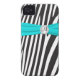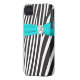 Mit Monogramm modernes Aqua blauer, schwarzer und weißer Zebra stripes Case-Mate kaum There™ iPhone 4 Kasten mit IMITAT-Band und jewelled Brosche.
