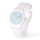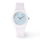 Eine stilvolle und sportliche Armbanduhr mit weißem Silikongurt zum Personalisieren mit dem Initial und einem Zickzack Muster in trendigem Dusk Blue und White.