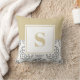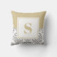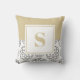 Ein elegantes und trendiges Kissen zum Einwurf. Beige Monogramm in einem doppelten weißen Block. Im Hintergrund ist beige auf der oberen Hälfte und ein grau-weißes kreisförmiges geometrisches Muster auf der Unterseite. Spaß und fantastisch!