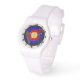 Armbanduhr-Armbanduhr für Bogenschießen. Sie können diese Uhr mit jedem beliebigen Text Ihrer Wahl anpassen. Sollten Sie Hilfe bei der Anpassung benötigen, kontaktieren Sie uns über den Link auf dieser Seite. Bogendesign mit Monogramm Uhr