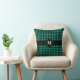 Ein Bauernhaus rustikal grün und schwarz Gingham kontrollierte karierte Muster werfen Kissen mit einem schwarzen Band und weiß personalisierten Monogramm. Machen Sie dieses Kissen zu sich selbst, indem Sie es mit Ihrem Monogramm anpassen, indem Sie die Textvorlage mit Ihren Initialen ändern. Vervollständigen Sie das Aussehen mit dem passenden karierten Zuhause-Dekor, das im Dots & Stripes Pattern Studio von Maggie B erhältlich ist.