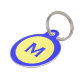 Helle, farbenfrohe Hundemarke in blau und gelb, mit einem großen Monogramm aus einem Buchstaben vorne und zusätzlichem, benutzerdefinierten Text auf der Rückseite. Personalisieren Sie den Text mit den Informationen Ihres Hundes. Sehr gut mit unserem koordinierenden Hundebandana, dem Haustierkragen und der Leine.
