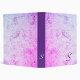 Das Design zeichnet sich durch einen rosa und lila marmorierten Hintergrund aus. In der rechten unteren Ecke befindet sich der erste, den Sie in einem lustigen, lila Schriftart liefern.