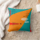 Mitte- des Jahrhundertsmodernes Kissen, Entwurf im aquamarinen, roten und orange Raumaltersentwurf. Vervollkommnen Sie für jeden modernen Dekor der Mitte des Jahrhunderts.