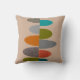 Abstraktes Ovalmuster des Mitte- des Jahrhundertsmodernen Kissens auf einem tan Hintergrund. Vervollkommnen Sie für jedes moderne Zuhause der Mitte des Jahrhunderts.