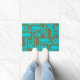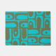 Mittelalterliche moderne Piquet Geometric Mod Olive Green und Türkis Multi Muster Türmatte Mat. Einzigartig, mit einer Retro-Moderne Mitte der Mod-Ästhetik, in leuchtenden Zyantönen und erdigen natürlichen Grüntönen. Von Kierkegaard Design Studio.