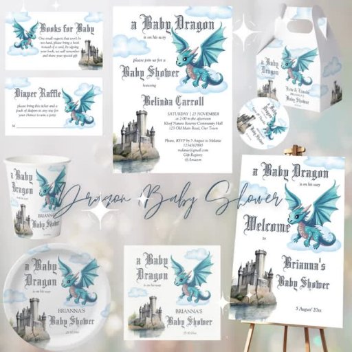 Dragon Baby Shower invitations stationery decorDesignt von Ieva Jenciute