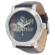 Uhr, Vintage Männeruhr mit schwarzem Lederarmband