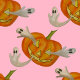 Dieses festliche Kissentuch ist mit rosa Aquarellmilben und Punkten auf grauem Hintergrund ausgestattet.