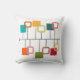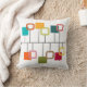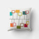 Dieses Kopfkissen aus der Mitte des Jahrhunderts ist ein modernes Design, das wie ein Handy aussieht, mit soliden und offenen Kästchen, die in aquamarin, orange, grün, rot und beige hängen.