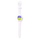 Mod Pop Dots in Regenbogenfarben lassen Sie auf dieser sportlichen weißen Uhr lächeln.
