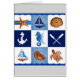 Original Aquarellmalerei von Sandra Gale, mit Blöcken von nautischen thematischen Zeichnungen wie Sternfisch, Anker, Schiff, Schildkröte und Muscheln. Das Design ist ausgezeichnet für den Sommer, die Zuhause, die Bungalows oder für alle, die den Strand, das Meer oder den Fisch Lieben.