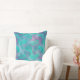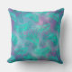 Dieses hübsche Kissen mit einem Aqua-blauen Palmenblatt-Muster, das fast farbenfroh zu sein scheint! Die verschiedenen Blätter werden auf einem Farbverlauf rosa violett lila Hintergrund platziert. Beide Seiten des Kissens haben das gleiche Design. Dieses Kissen macht einen besonders hübschen Innenhof-Akzent.