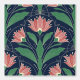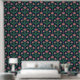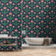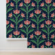Modern Art Deco Boho Red Floral on Navy Blue Tapete