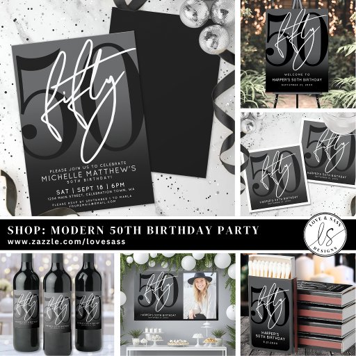 Fifty Years Simple Black White 50th Birthday PartyDesignt von JJ Marie