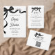 This modern black bow invitation blends a clean minimal layout with an elegant ribbon illustration for a simple and stylish wedding look. The bold contrast of black against white creates a crisp, timeless feel that works beautifully for classic, contemporary, or black tie celebrations. The text is fully editable, and you can also change the bow color to suit your palette, making it easy to personalize this card for your day. This design coordinates with matching pieces in the suite to carry the same modern bow aesthetic throughout your event.