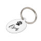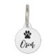 Pet ID Tag mit stilisierten schwarzen Haustier, Hundepfow Druck und anpassbarer Haustiername auf der Vorderseite und Text Vorlage mit Telefonnummer auf der Rückseite. Die Hintergrundfarbe ist weiß und kann nach Belieben geändert werden. Dieses leicht zu personalisierende Halsband ist eine nette Geschenkidee für alle Tierhalter und ihre vierbeinigen Abenteurer. Viel Freude beim Design und dem Verteilen © y.BEE PAPERIE