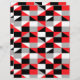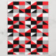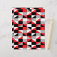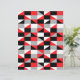 Dieses Scrapbook-Papier zeichnet sich durch ein modernes geometrisches Design aus, mit Dreiecken und Rechtecken in Rot, Schwarz, Grau und Weiß.