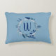 Modern Blue Floral Wreath Custom Monogram Dekokissen