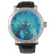 Steine, Kristalle und Mineralien sind ein zeitloser, trendiger Stil. Dieser Druck zeichnet sich durch ein nahes Bild eines lebendigen, blauen Gesteins aus, mit kleinen Kristallen in der Tasche. Eine helle türkisfarbene oder aqua-blaue Färbung mit einzigartigen Linien und Verband. Ein spielerischer, aber moderner und stilvoller Look. Niedlich Trendy Bright Blue Türkise Crystal Geode Watch