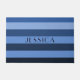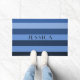 Moderne blaue Streifen Muster Individuelle Name Doormat.