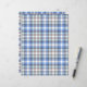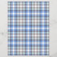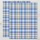 Dieses Scrapbook-Papier zeichnet sich durch ein buntes tartanisches (kariertes) Muster in Weiß, Blau und Braun-Grau (Taupe) aus.