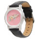 Modern Boho Floral Pink Classic Black Leather Women's Watch, Modern Boho Blues Pink Klassik Black Leather Frauen-Uhr