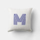 Dieses moderne und stilvolle Kissen besticht durch eine trendige, gestreifte, diskotypische Typografie. Das Kissen, wie hier gezeigt, weist einen blauen Buchstaben auf einem weißen Hintergrund auf, aber Sie können ganz einfach jede Farbe für den Buchstaben und den Hintergrund im Designwerkzeug auswählen. Ein cooler und farbenfroher Blick, den jeder Liebe würde.