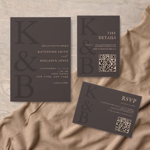 Easily personalize your wedding invitations with this editable template. Features minimal elegant typography design in brown color.