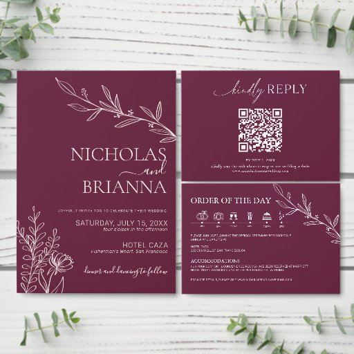 Modern Burgundy Boho Wedding Simple Elegant RSVP Karte