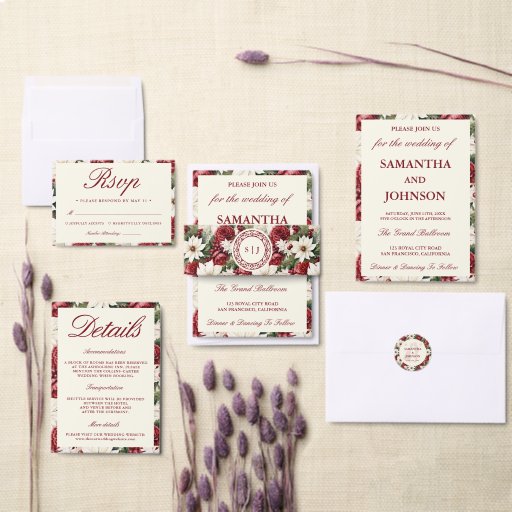 Modern Burgundy Vintage Ivory Floral Wedding SuiteDesignt von persisruth shiny
