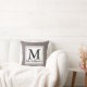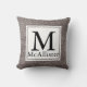 Tief kaffeebraun und weiß Akzente Herringbone gemusterter Hintergrund. Die Mitte ist mit einem weißen quadratischen Rahmen mit schwarzem Monogramm-Buchstaben und einem vollständigen Familiennamen versehen. Vorder- und Rückseite sind gleich. Auch auf lumbalstigen Kissen erhältlich.