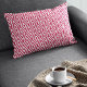 Dieses moderne Kissen weist ein geometrisches Muster in Rot und Weiß auf.