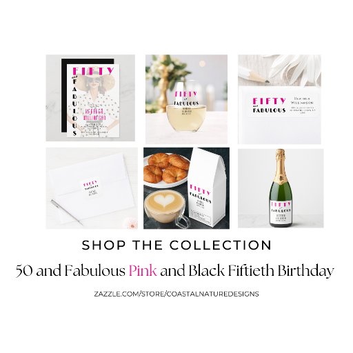 Modern Pink and Black Fifty and Fabulous BirthdayDesignt von Hillary Lee