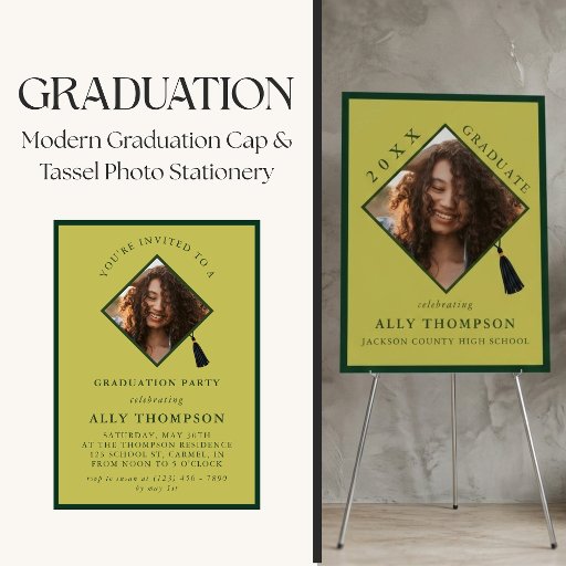 Modern Graduation Cap and Tassel Photo StationeryDesignt von Molly H