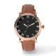 Showcase your business logo with this modern minimalist black watch design. Featuring a sleek black watch face with a vintage rose gold case and brown leather strap, this design provides a professional, luxurious, and stylish branding visual. Perfect for logo presentations, marketing materials, social media branding, and professional promotional content, helping your logo stand out with elegance and sophistication.