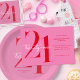 Modern Minimalist Pink Red 21st Birthday Serviette