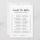 Modernes Minimalistisch würde sie lieber Game Card. Dieses Spiel ist mit einer gepflegten Anordnung und eleganter Typografie gestaltet und eignet sich perfekt für die moderne Braut, die schlichte, aber stilvolle Details Liebe.