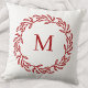 Modern Monogram Initial Red Leaf und Berry Wreath Kissen