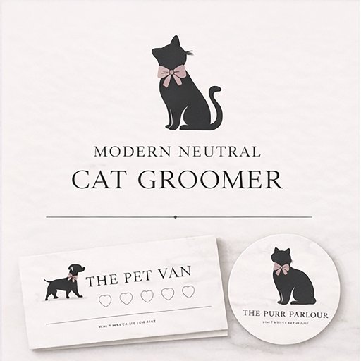 Modern Neutral Cat Grooming Business Card Template featuring a minimalist cat logo and refined, professional layout designed for boutique feline grooming businesses. The warm ivory background, charcoal typography, and muted blush accent create a polished, contemporary look that feels elevated yet timeless. Fully customizable with your business name and contact details. Part of the Modern Neutral Cat Groomer Branding Collection. Matching appointment cards, loyalty cards, thank you cards, and logo stickers are available to create a cohesive client experience. Designed for modern cat groomers who want branding that reflects the quality of their services. ©PetStar Studio