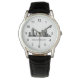 Uhr, Vintage Männeruhr mit schwarzem Lederarmband