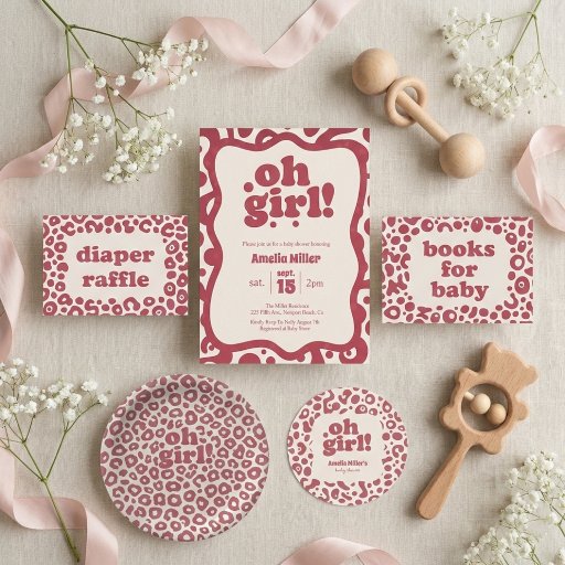 personalized baby shower stickers, pink leopard favor labels, oh girl stickers, custom baby shower labels, wild one favor tags, animal print envelope seals, pink leopard print, baby girl shower favors, safari favor stickers, personalized name stickers, mauve leopard print, chic baby shower decor, thank you favor stickers, custom party labels, stay wild baby shower