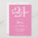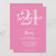 Eine einfache, moderne Einladung zum 21. Geburtstag mit eleganter Kalligraphie-Schrift-Typografie und minimalistischem Design in Rosa und Weiß.
