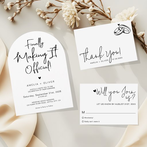 The design highlights the joyful phrase “Finally Making It Official!” in a handwritten style.