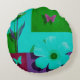 Modern Teal Floral Garden Round Pouf Rundes Kissen