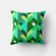 Kopfkissen in einem Mittelalter Moderne Design von Schichtendreiecken in den Schattierungen von tiefgrünem Smaragdgrün, Limon, aqua, aquamarin und türkis