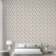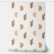 Diese schöne Tapete ist mit einem modernen, bohonen, abstrakten Muster (Halbkreise in heller Terrakotta, staubiges Rosa, Akzente aus Blättern) auf weißem Hintergrund gestaltet.