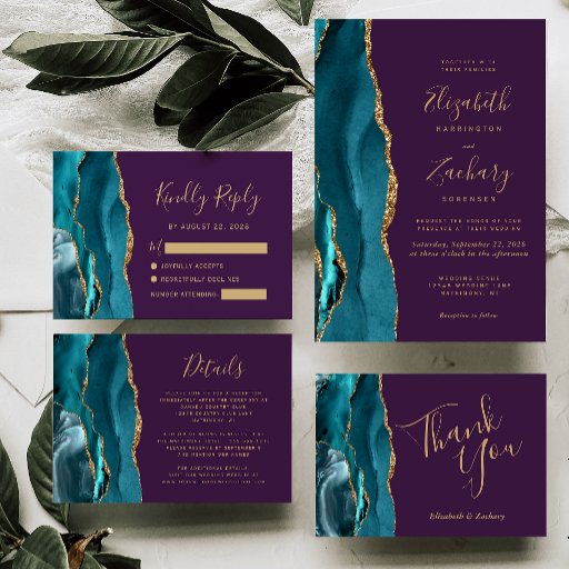 Teal Gold Agate Purple Wedding SuiteDesignt von Akhates Designs