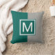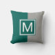 Modernes Aquamarines und graues Mit Monogramm Kissen