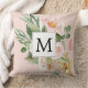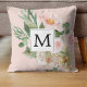 Moderne Aquarellfarben Rosa Blume Mit Monogramm Kissen